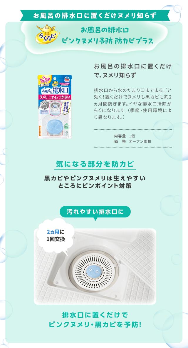 ・らくハピ お風呂の排水口 ピンクヌメリ予防 防カビプラス×1点