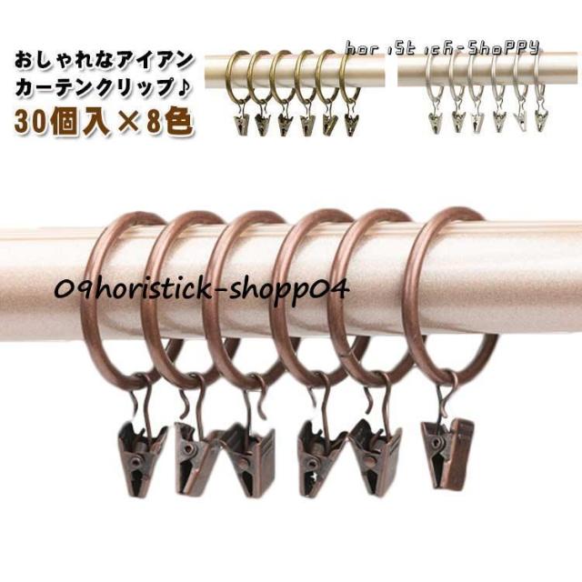 カーテンクリップ 30個入 カーテンリング カーテンフック アイアン クリップランナー カフェカーテン クリップ フック リング カーテンレール用 ア
