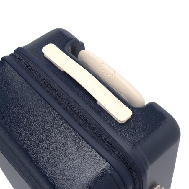 | HaNT/『ポルメロー』 少しレトロな雰囲気とレザー調のマットな質感がおしゃれなスーツケース。 本体とコンビカラーの引手がデザインのアクセントになっています。 国際線・国内線座席数100席以上の機内持込みに対応可能なサイズです。 ●レザー調のシボが施されたクラシカルなボディシェル。 レザーのような表情を楽しめるシボは、キズも目立ちにくくマットな質感。 ●両面仕切り仕様 内装は荷こぼれを防ぐ両面仕切りタイプ。 可愛いさと使いやすさを兼ね備えたメッシュの切り替えデザイン。 ●内装ポケット 小物雑貨を収納できるマチ付きの内装ポケット。 ●キャスターストッパー 電車での移動などで、手を離しても転がらない便利なキャスターストッパー付き。 ●旋回性に優れ、容易に方向転換可能な双輪キャスター。 ●身長や持ち方に合わせて4段階調整が可能なプルドライブハンドル。 ●カギの持ち歩きが不要な3桁のダイヤル式TSロック。 |