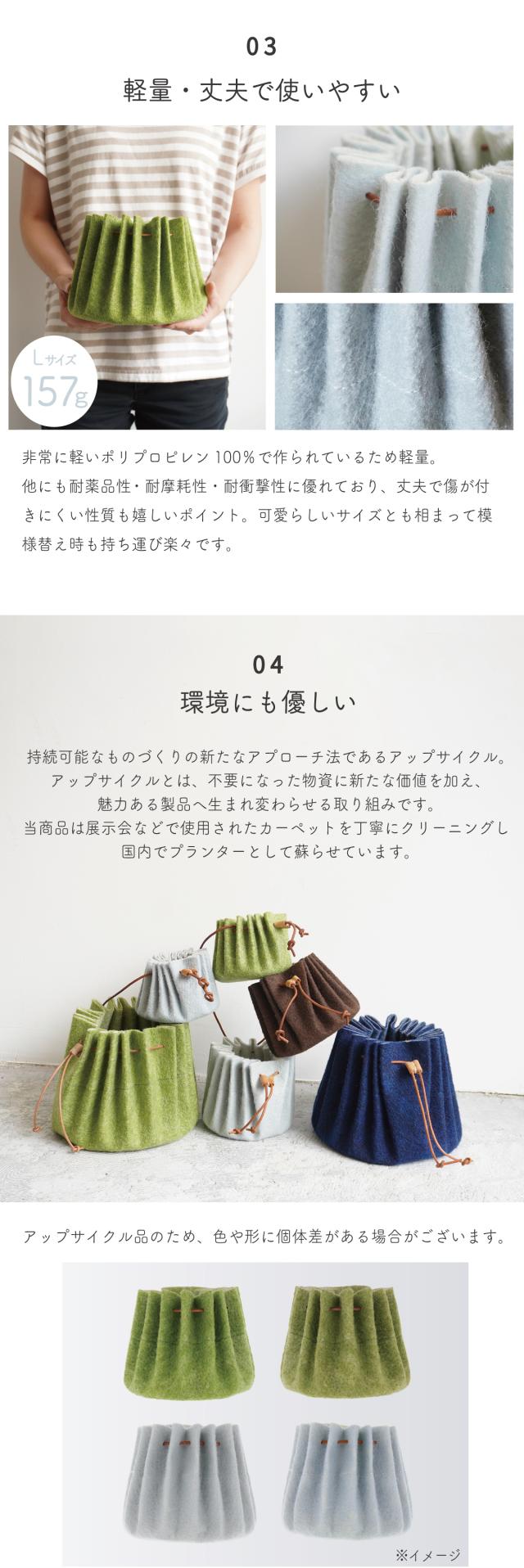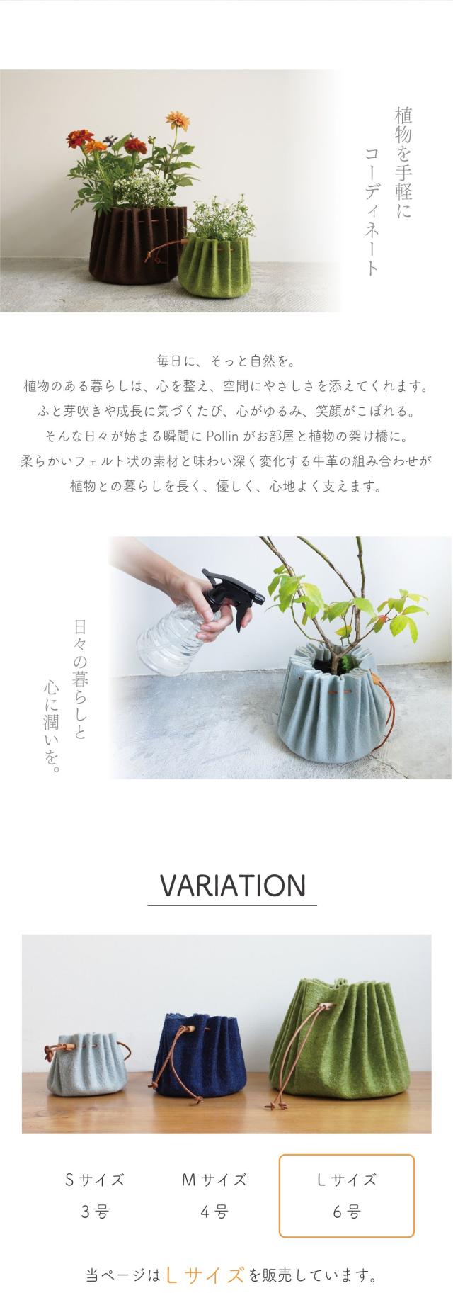 Pollin(ポーリン)は、素材の持つ質感や風合いを生かしたものづくりにこだわる、株式会社ウメロイークが手がけた、人と暮らしに寄り添う再生素材のプランターです。
