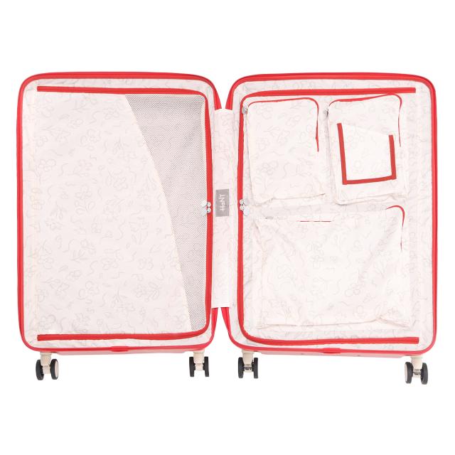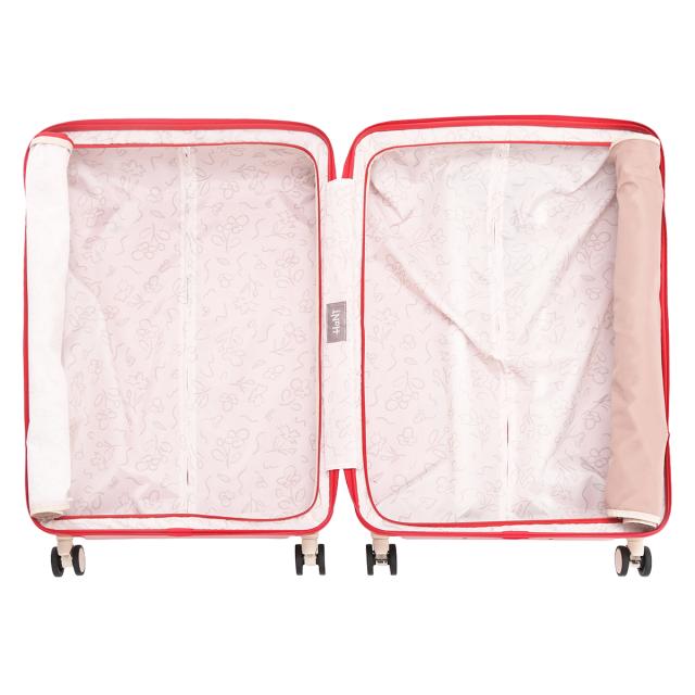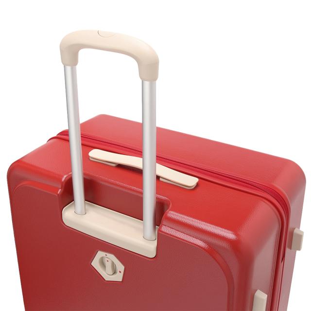| HaNT/『ポルメロー』 少しレトロな雰囲気とレザー調のマットな質感がおしゃれなスーツケース。 本体とコンビカラーの引手がデザインのアクセントになっています。 ●レザー調のシボが施されたクラシカルなボディシェル。 レザーのような表情を楽しめるシボは、キズも目立ちにくくマットな質感。 ●両面仕切り仕様 内装は荷こぼれを防ぐ両面仕切りタイプ。 可愛いさと使いやすさを兼ね備えたメッシュの切り替えデザイン。 ●内装ポケット 小物雑貨を収納できるマチ付きの内装ポケット。 ●キャスターストッパー 電車での移動などで、手を離しても転がらない便利なキャスターストッパー付き。 ●旋回性に優れ、容易に方向転換可能な双輪キャスター。 ●身長や持ち方に合わせて4段階調整が可能なプルドライブハンドル。 ●カギの持ち歩きが不要な3桁のダイヤル式TSロック。 |