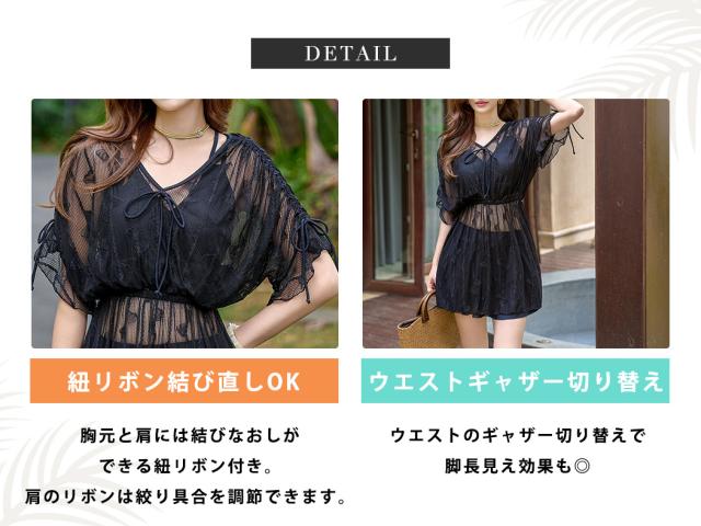 軽やかな透け感のある生地には繊細なリボン模様の刺繍が散りばめられ、上品な可愛さをプラス。