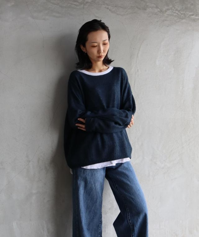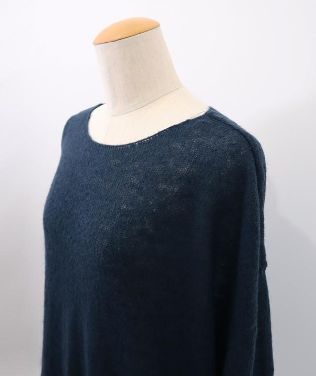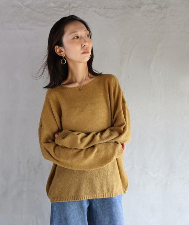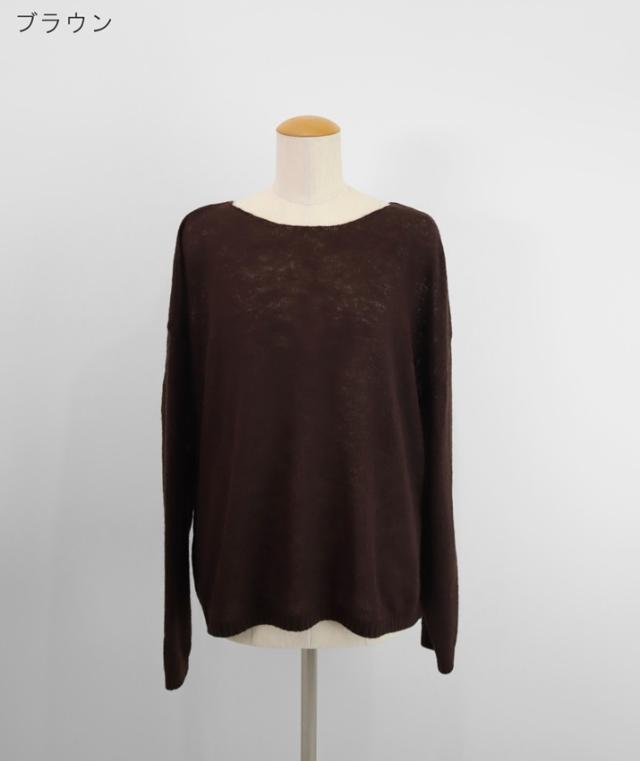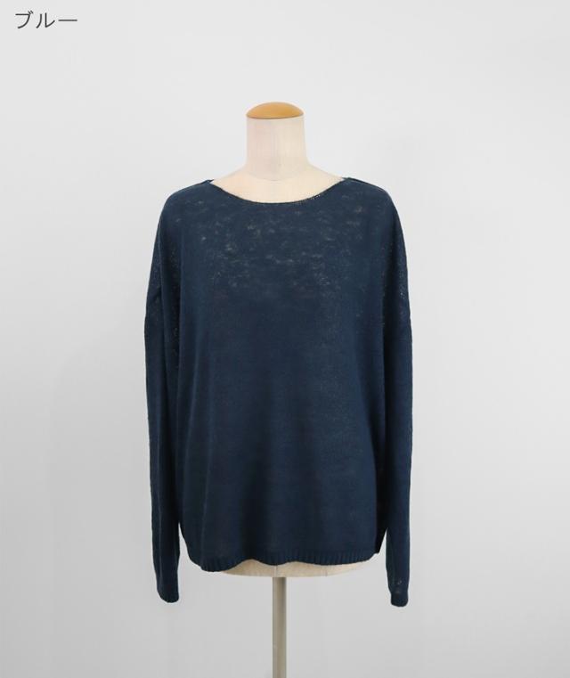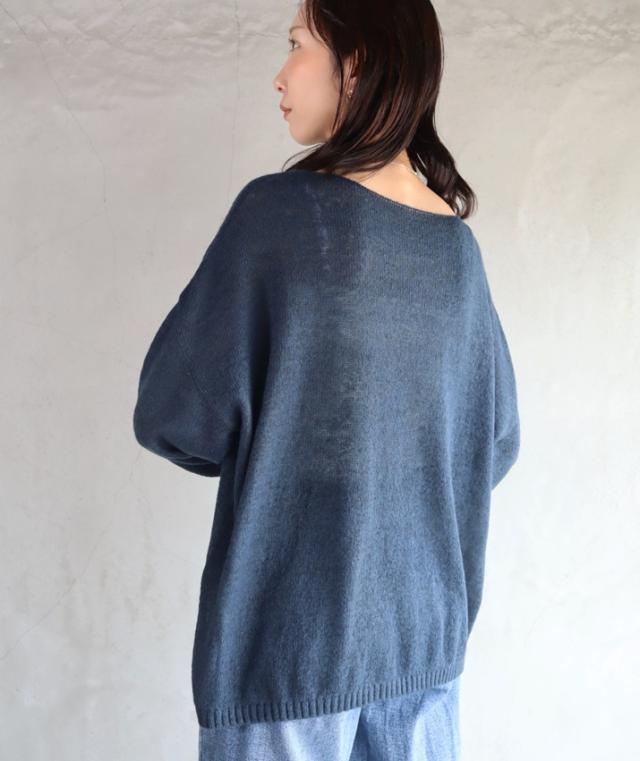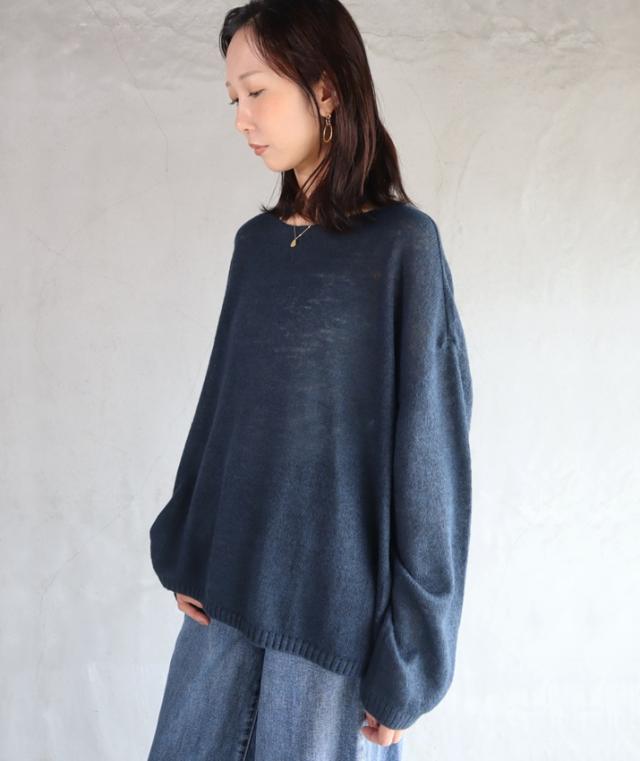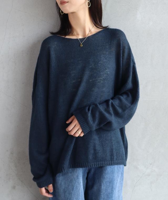 ナクナルマデ 7ゲージ 透け感 シアーニット ボートネック 丸首 毛混 プルオーバー サスティナブル アップサイクル