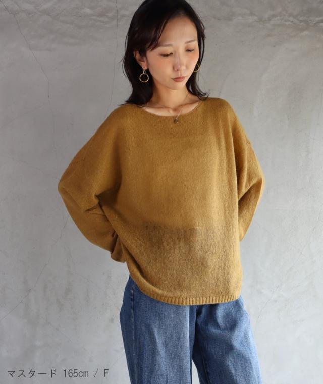nacnarumade ニット セーター シアー トップス 秋冬 冬 秋 日本製 レディース モヘアタッチ ウール クルーネック 長袖 薄手 五泉ニット タムヤーンシア—ニット