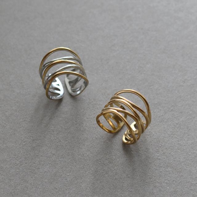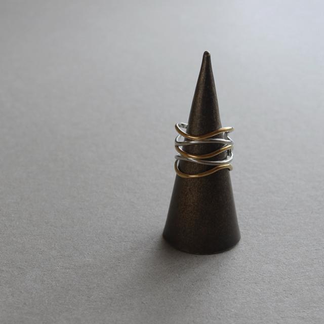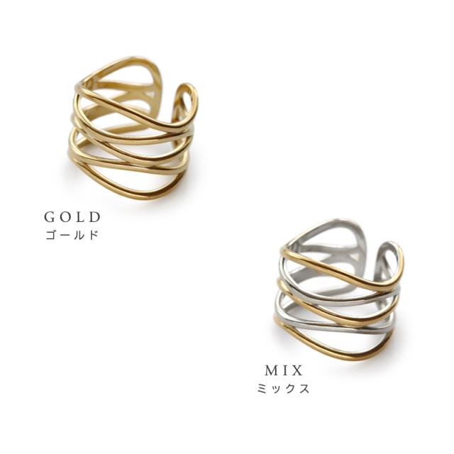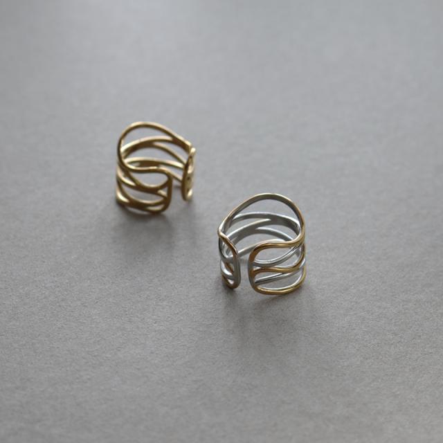 緩やかなウェーブラインをランダムに重ねた5連風のオープンリング。