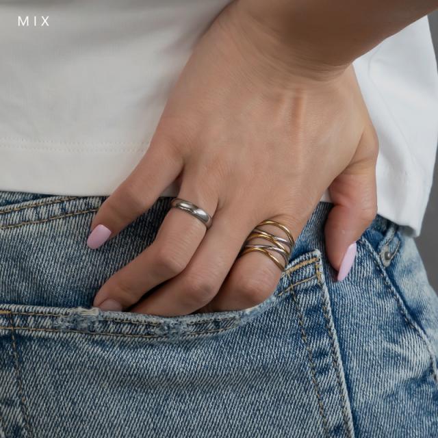 指輪 リング レディース ステンレス製 金属アレルギー ミックス バイカラー ゴールド シルバー 大ぶり ニュアンス 13号 フリーサイズ 普段使い オケージョン
