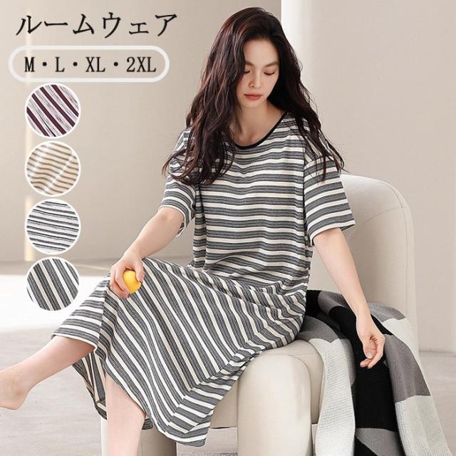ワンピース レディース 部屋着 綿 パジャマ ルームウェア 夏 半袖 かわいい 大きいサイズ コットン 膝下 サマーパジャマ 湯上り ゆったり 女性 リラックス おしゃれ 誕生日 ギフト 結婚祝い プレゼント