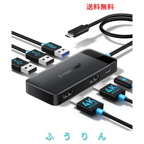 USB C ドッキングステーション hdmi 2つ 6 in 1 USB C ハブ Lemorele 4K@30Hz デュアル HDMI 拡張 2画面出力 100W PD急速充電 5Gbps高速