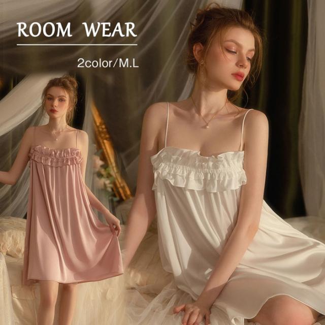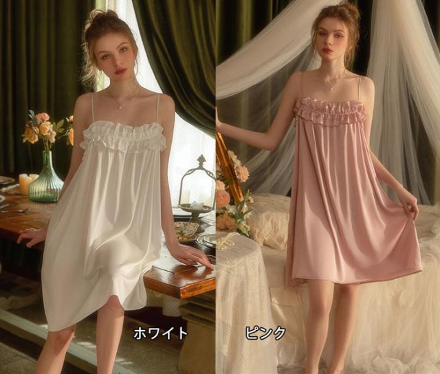ルームウェア パジャマ レディース キャミワンピ ネグリジェ お姫様 姫系 ホワイト ピンク かわいい レース セクシー 白 シンプル キャミソールりぼん ゆるふわ ナイトウェア 部屋着 寝間着 春 ワンピース フリル お家時間 ゆったり リラックス ギフト 結婚祝い