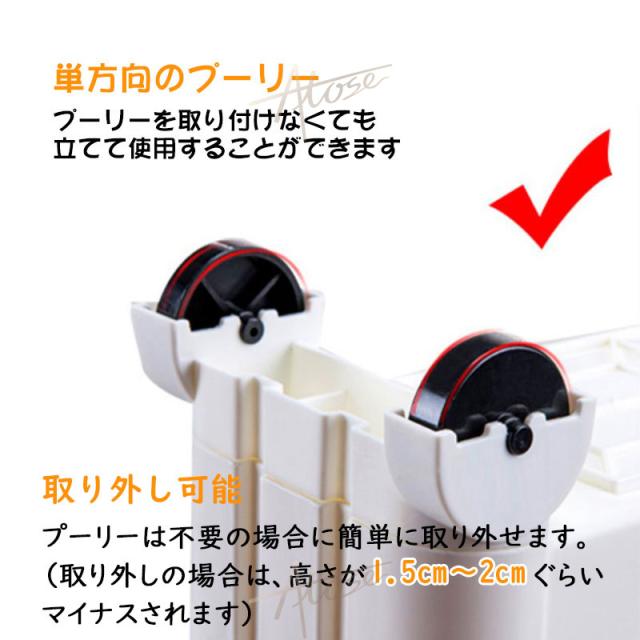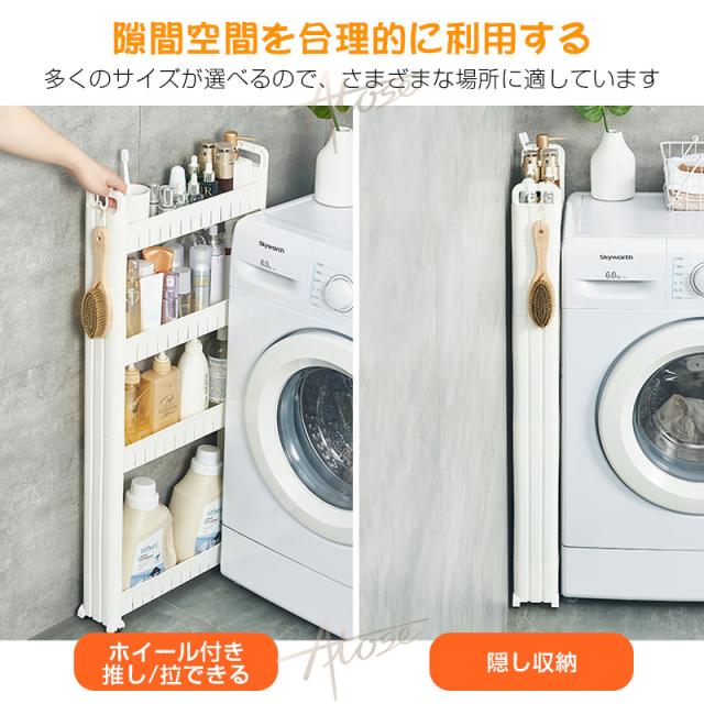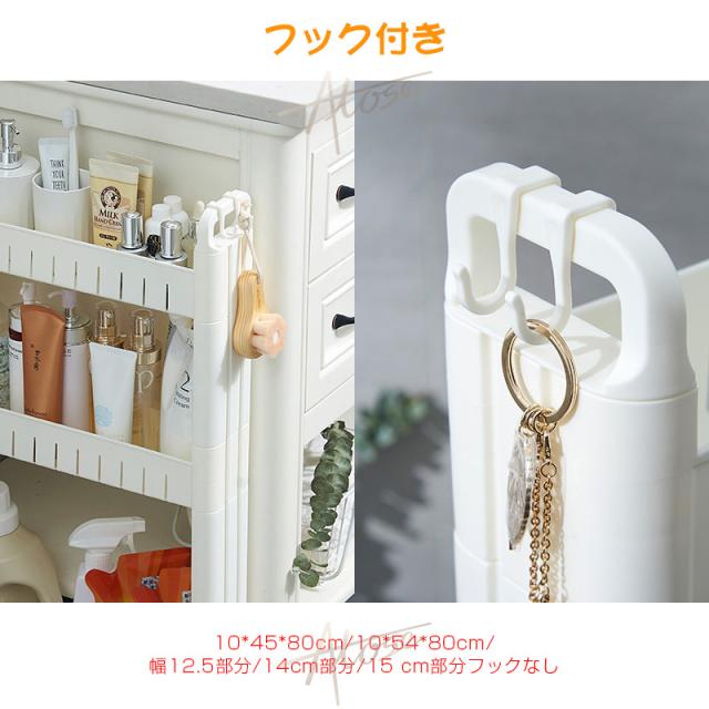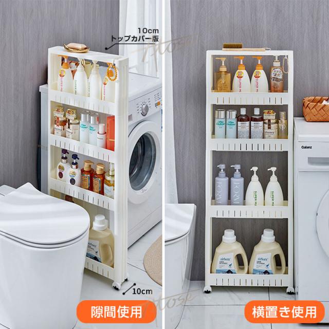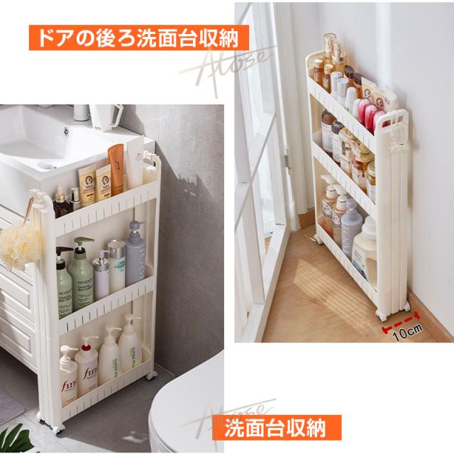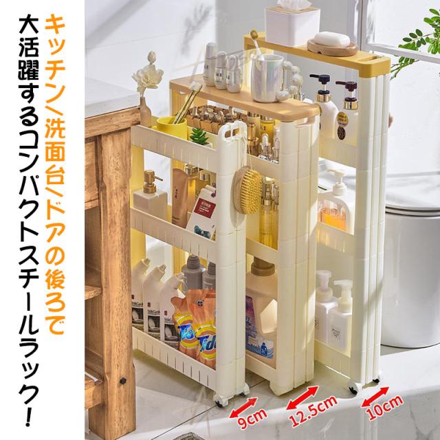 キッチン以外でも使え、色んな場所で大活躍します。洗面所ではランドリーや洗面の隙間の収納、トイレではペーパーホルダーラックとしても使えます。プラスチック製で水に濡れてもすぐにふき取ることができるので、お掃除も簡単です。また、リビングなどでは壁面に沿わせて収納することもできます。