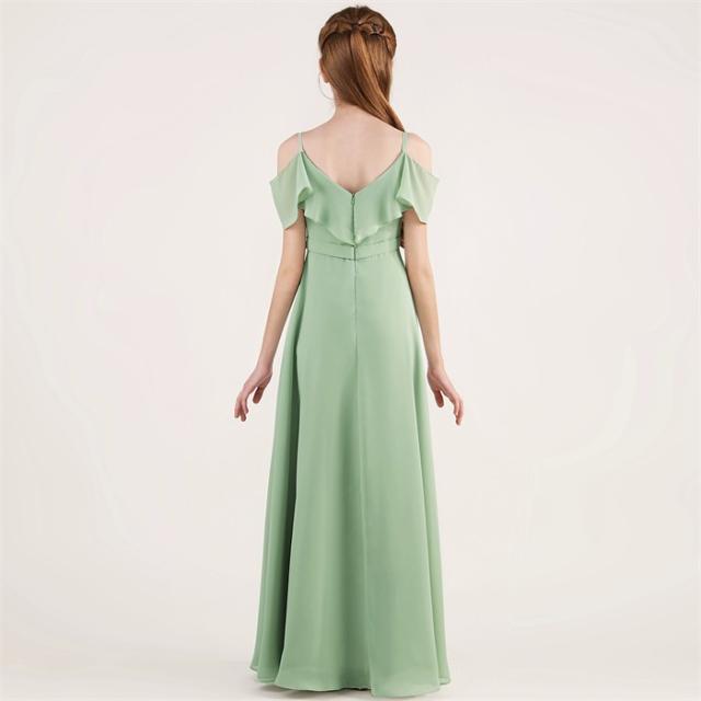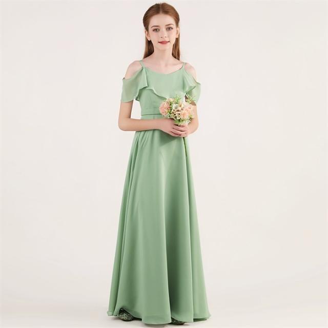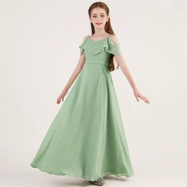 ドレス 発表会 結婚式 女の子 ピアノ発表会 シフォン ジュニア 140 150 160 170 フォーマル ワンピース コンクール ロング 半袖 子供 ロングドレス キッズドレス パーティドレス グリーン 緑 上品 かわいい おしゃれ コンサート 舞台 イベント 七五三 夏