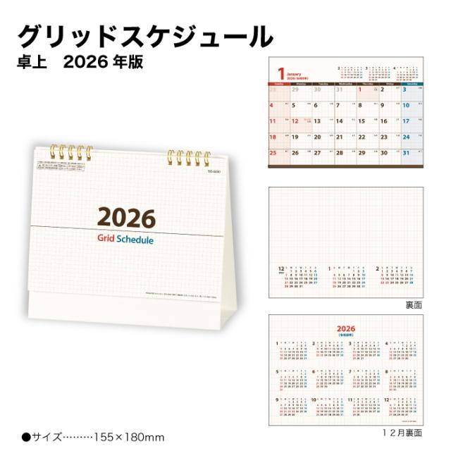 カレンダー 2026年 卓上 グリッドスケジュール SG9230 カレンダー 2026 卓上 シンプル デザイン スケジュール管理 グリッド入り おしゃれ モダン 機能的 予定表 258206