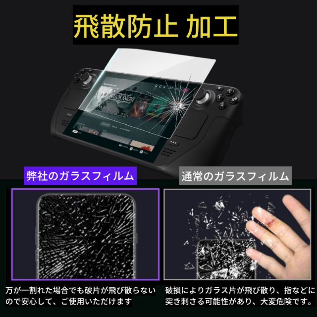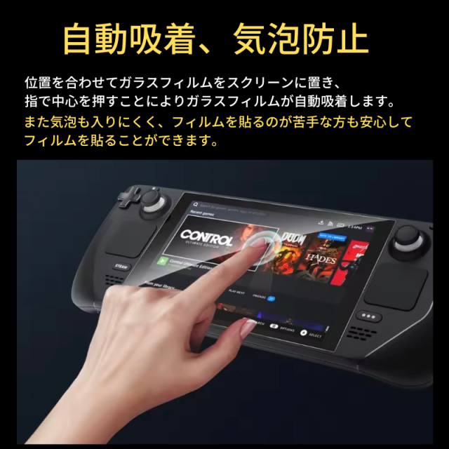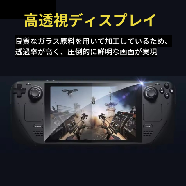 Steam Deck OLED / Steam Deck LCD ガラスフィルム 強化ガラス 保護フィルム 光沢 全面保護 高透過 硬度9H 飛散防止 指紋防止 Valve スチームデック