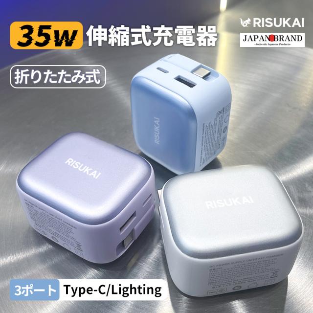 伸縮式充電器 / ケーブル内蔵充電器 / GaN急速充電器 / 折りたたみプラグ / 3ポート充電器 / プレゼントおすすめ充電器 / コンパクト充電器 / iPhone対応 / Android対応