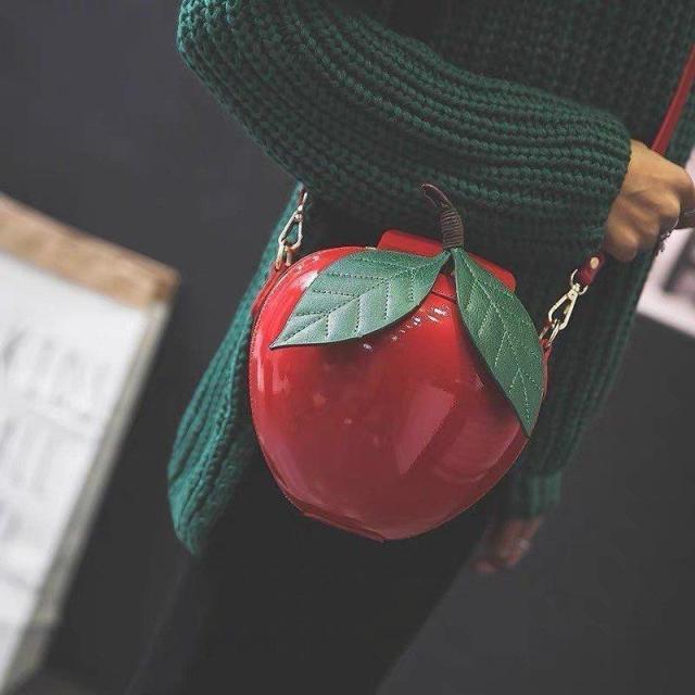 ツヤ感が可愛らしいリンゴ型の半立体ショルダーバッグ