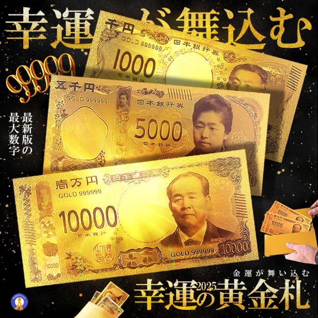 金色の一万円札 幸運の黄金札 お札 偽札 千円札 五千円札 一万円札 5枚セット レプリカ 金運 お守り 風水 金 ゴールド 金ピカ 強運 お金 強運 財布 ギャンブル ゾロ目 ラッキー 景品 グッズ 縁起物 パワー おもしろグッズ プレゼント 願掛け 新壱万円札 LUCKY