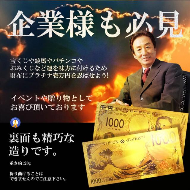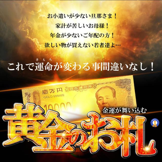 この黄金に輝く拾億円札を財布に入れて財布の中身も気持ちも高めましょう。