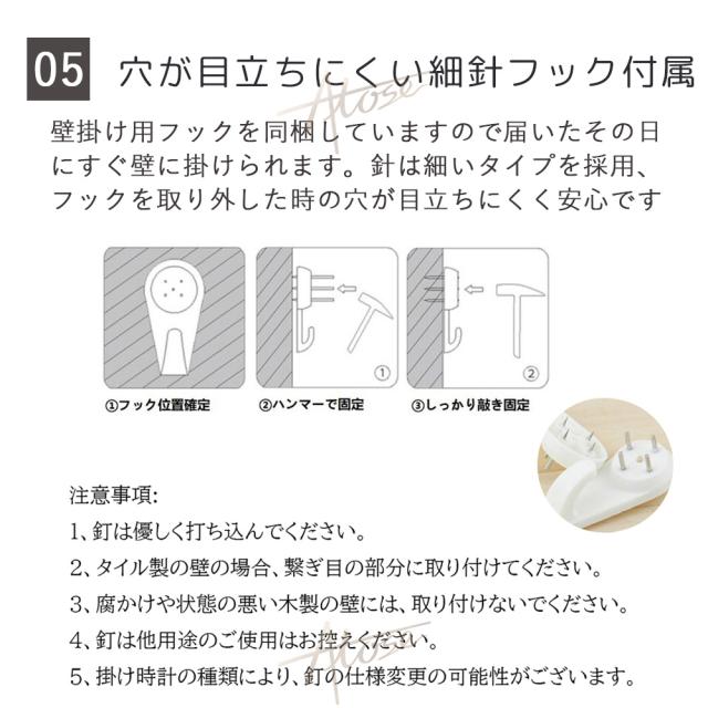 【便利】掛け時計背面には引っ掛けるための穴が付いています。また、乾電池だから取り換えも簡単。