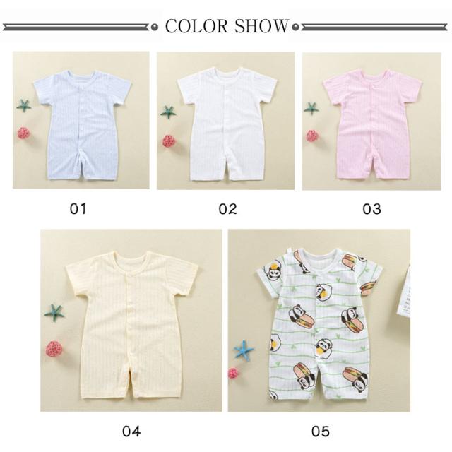 送料無料 20色 ロンパース カバーオール 半袖 新生児 ベビー服 無地/総柄 男の子 女の子 子供服 赤ちゃん 前開き 全開き 綿 お部屋着 カラバリ 肌着 夏服 半そで 赤ちゃん 薄手 おしゃれ かわいい 66 73 80 90cm