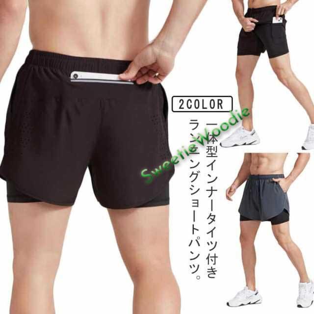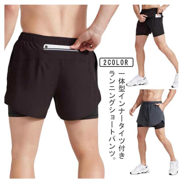 ランニングパンツ メンズ インナー付き 春 夏 ジムウェア ショートパンツ レギンス 一体型 ランパン アンダーウェア インナータイツ付き 通気 吸汗速乾 ランニングウェア ショート丈 ハーフパンツ ポケット付き 短パン ストレッチ ジム トレーニングウェア スポーツウェア