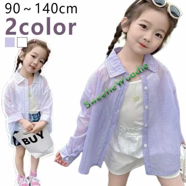 キッズ シャツ 女の子 トップス ブラウス シアー 透け感 子供服 可愛い おしゃれ シンプル 無地 長袖 シアーシャツ シースルー 羽織 韓国 ガールズ 小学生 幼稚園 保育園 透けシャツ 90 100 110 120 130 140cm