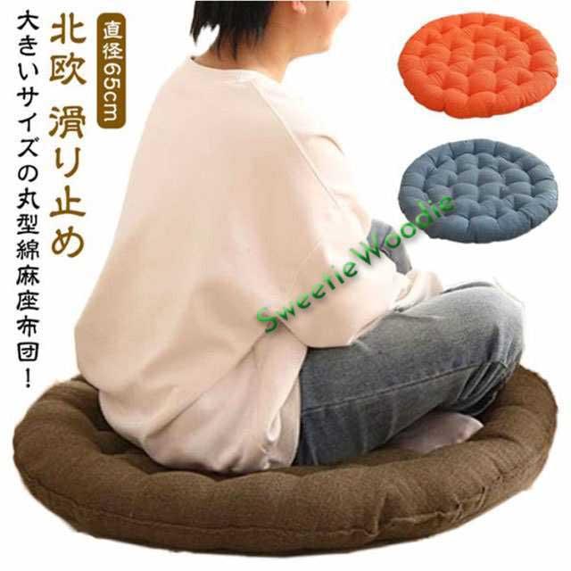 かわいい 丸型 座布団 円形 直径65cm 丸座布団 綿麻 座布団 北欧 おしゃれ クッション ラウンドクッション ふわふわ 厚い 大きい 大きいサイズ 滑り止め 無地 インテリア 雑貨 お盆用 来客用 在宅 ギフト プレゼント