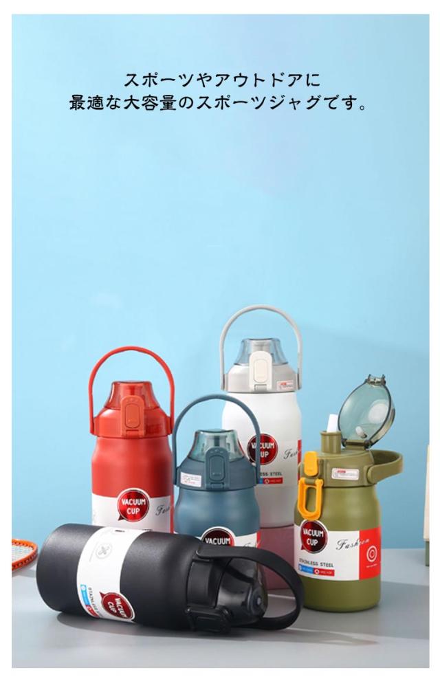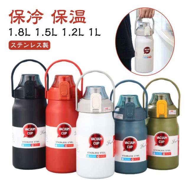 水筒 1.8L 1.5L 1.2L 1L ステンレス ワンタッチ 保冷 保温 大容量 スポーツジャグ 直飲み 大人 子供 ウォータージャグ スポーツドリンクOK 持ちやすい 取っ手 ストロー付き スポーツボトル 小学生 学校 マグボトル 広口 おしゃれ