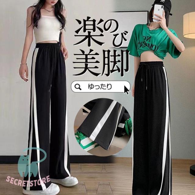 ガウチョパンツ ワイドパンツ レディース パンツ ウエストゴム 薄手 スポーツ チノパン ズボン ロング ゆったり イージーパンツ カジュアル 秋 春夏
