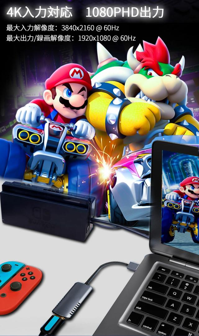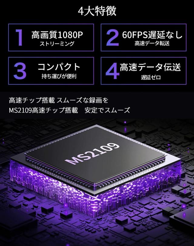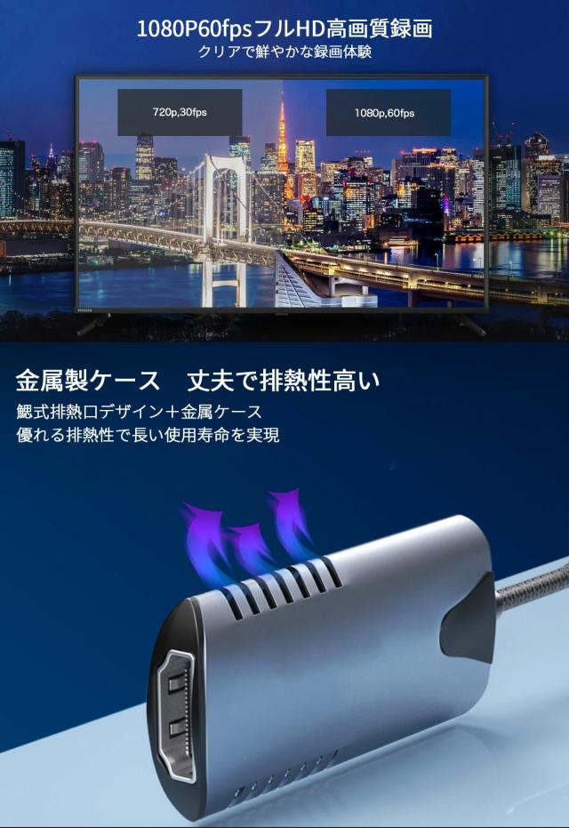 放熱 HDMI キャプチャーボード Switch USB&Type C 1080P 60FPS ビデオキャプチャー フルHD ゲームキャプチャー ゲーム実況生配信/ライブ会議/ライブビデオ配信/ 録画 PS5 Xbox OBS/Potplayer/XSplit適用 Linux Mac/Windows