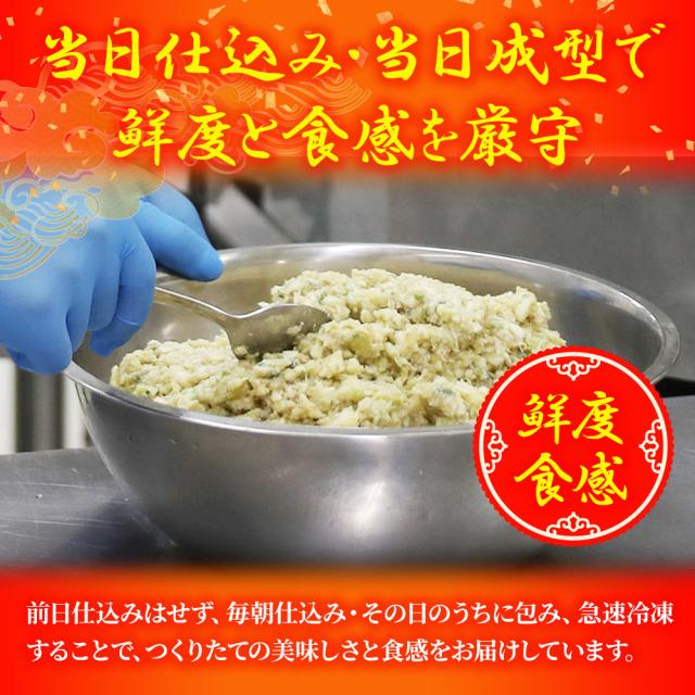 【添加物・仕様】酒精、加工でん粉、調味料(アミノ酸等)(一部に小麦・乳成分・牛肉・ごま・ゼラチン・大豆・鶏肉・豚肉を含む)・IQF凍結