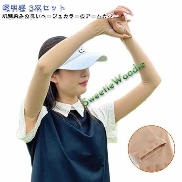 アームカバー UVカット 3ペアセット 肌色 涼感 涼しい 指穴 日焼け対策 防止 ロング 指なし 毛穴 シミ あざ隠し 透明感 ゴルフウェア 紫外線カット スポーツ 小物