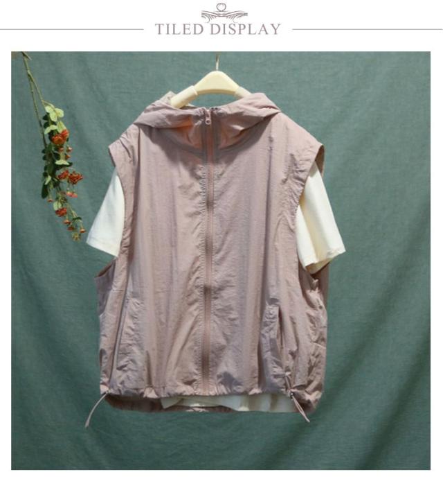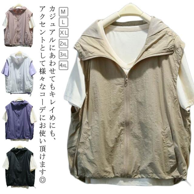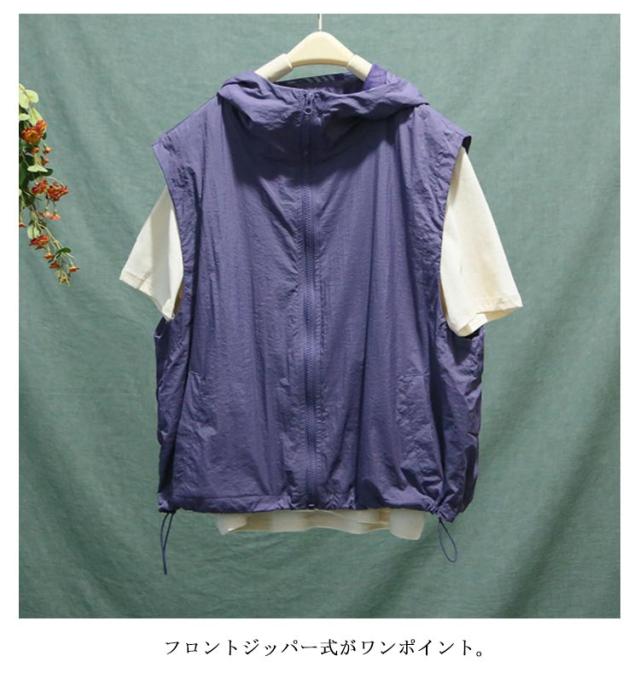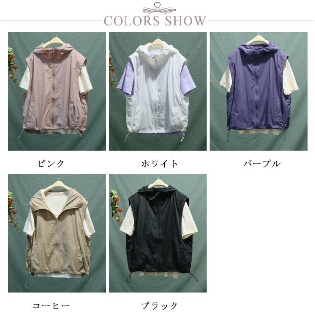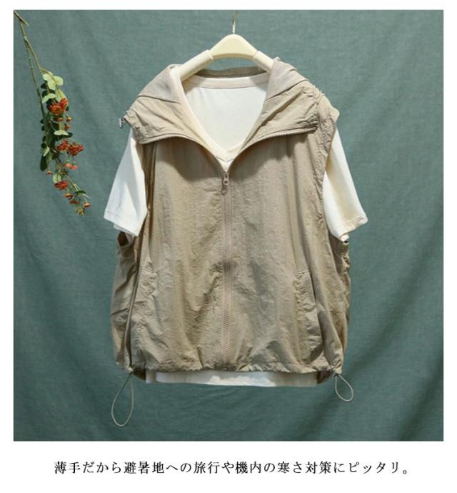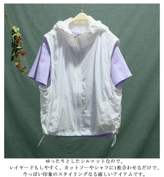 半袖 ベスト レディース フード付き 送料無料 半袖パーカー 前開き 送料無料 トップス 涼しい 春夏 ジップアップ アウター 切り替え 無地 シンプル カジュアル ゆったり 体型カバー