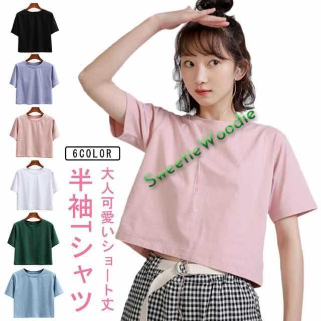 ショートTシャツ レディース カットソー トップス 半袖tシャツ ショート丈 おしゃれ ゆったり 体型カバー 短め 無地 大人可愛い 綿 コットン シンプル カジュアル 夏 春 秋 大きいサイズ Vネック ランドネック 通勤 通学 送料無料 S M L XL