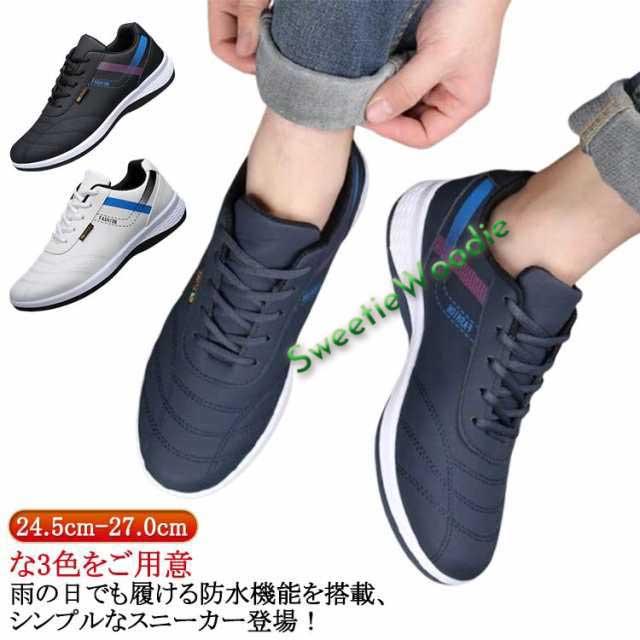 防水 スニーカー メンズ カジュアルシューズ 幅広 ウォーキングシューズ 軽量 防水シューズ レースアップ 運動靴 紳士靴 合皮 撥水 ビジネス ランニング ゴルフ 歩きやすい 通勤 通学 中学生 24.5cm-27.0cm 春夏秋冬