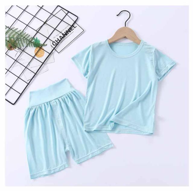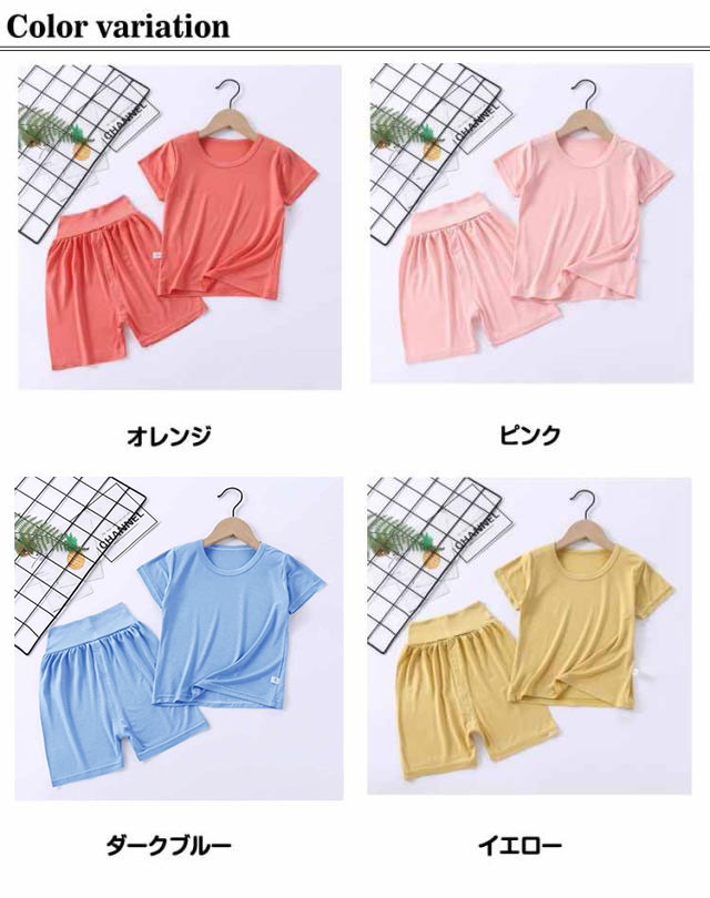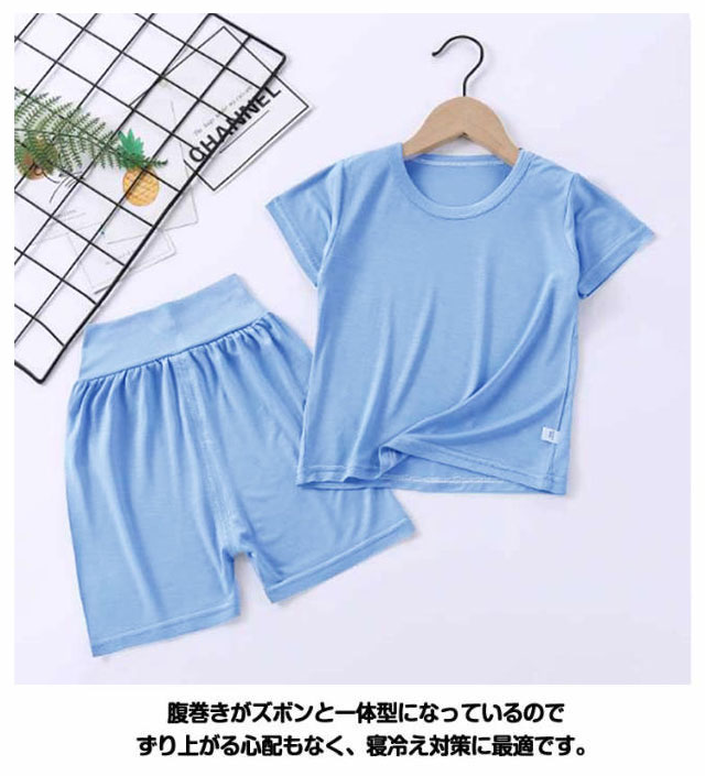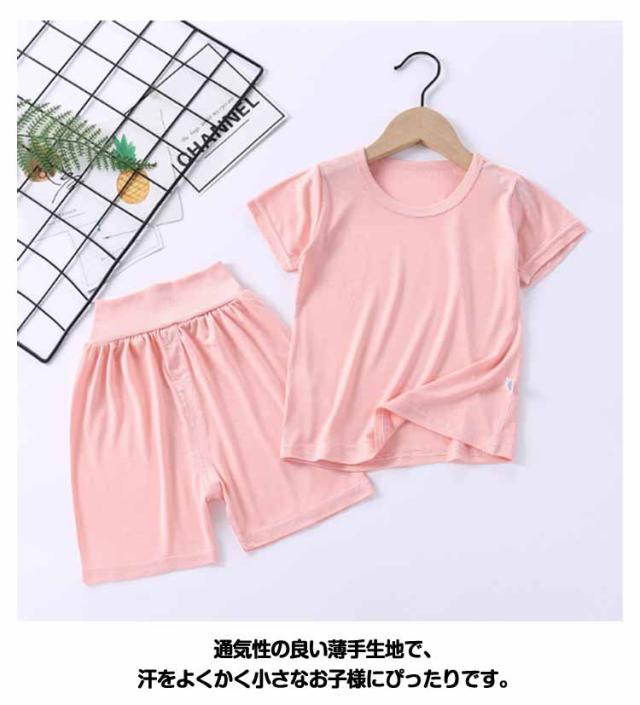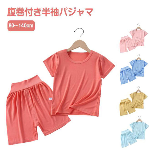 ベビー パジャマ 上下 腹巻き付き キッズ ルームウェア 部屋着 80?140cm 男の子 女の子 子供服 半袖 トップス ハーフパンツ 上下セット ベビー 子供 ナイトウェア 寝間着 寝巻き モダール 伸縮性 男女兼用 リラックスウェア 薄手 涼しい 無地 おしゃれ 可愛い 送料無料