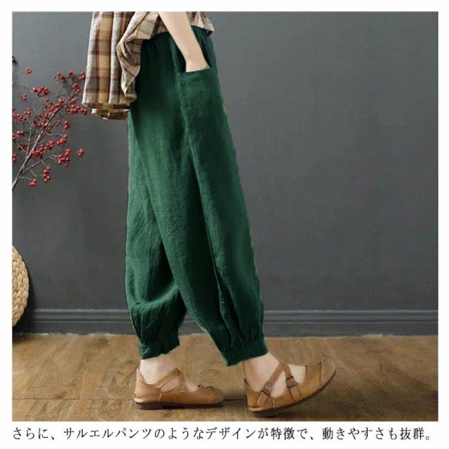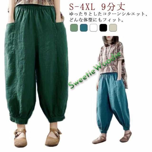サルエルパンツ レディース 夏 ズボン 9分丈 ドッキング 綿麻風 テーパードパンツ ウエストゴム ハイウエスト ポケット ゆったり 大きいサイズ ボトムス 体型カバー 無地 春 秋 カジュアル シンプル リラックス 通勤 通学 送料無料