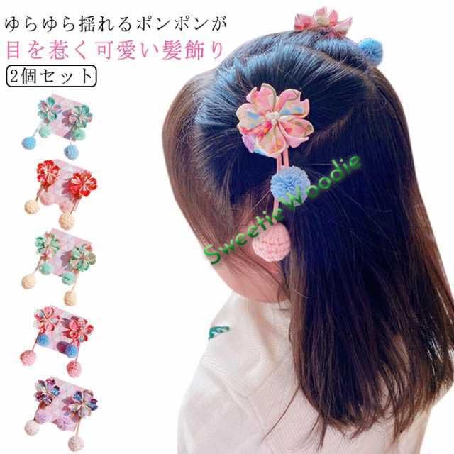 送料無料 七五三 髪飾り 2点セット ちりめん つまみ細工 ポンポン 髪飾り ヘアクリップ 梅 桜 和装 夏祭り 浴衣 着物 ヘアアクセリー フラワー 和柄 揺れる 卒園式 卒業式 着物 振袖 洋服 結婚式 パーティー