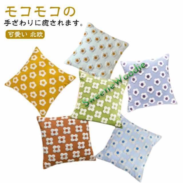 クッション カバー 45cm×45cm 花柄 ブルー フラワー 青 クッションカバー オレンジ もこもこ 大きい 大きめ 紫 パープル おしゃれ 可愛い 北欧 四角 正方形 韓国 雑貨 インテリア デザイン グリーン イエロー 黄色 北欧 デイジー 送料無料