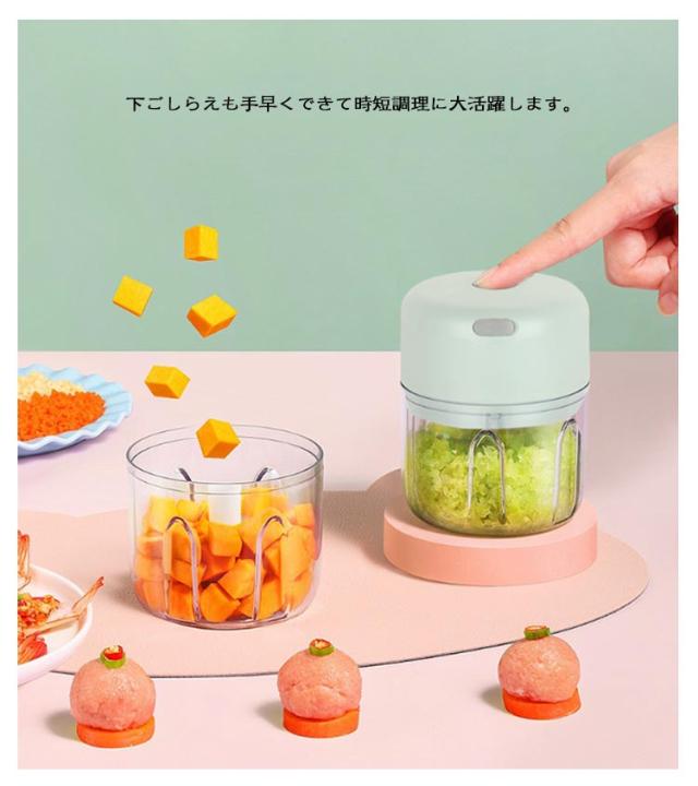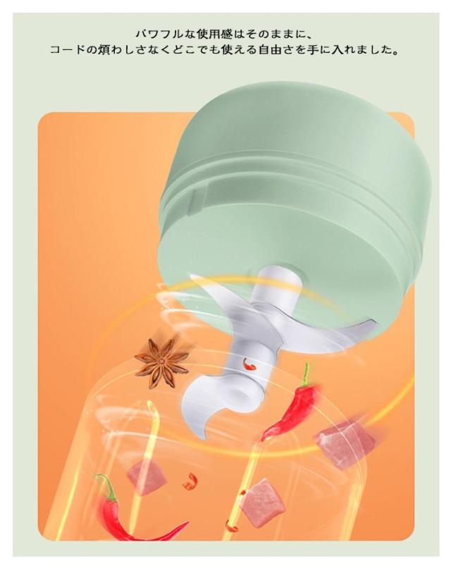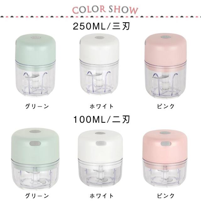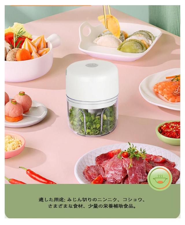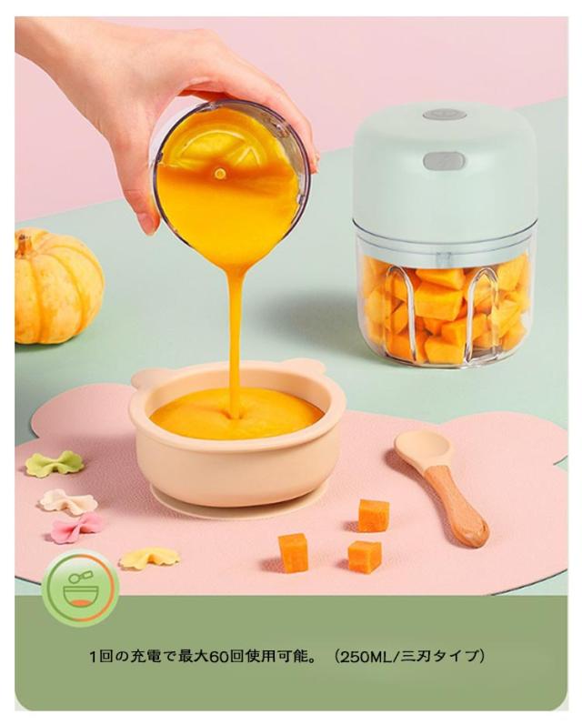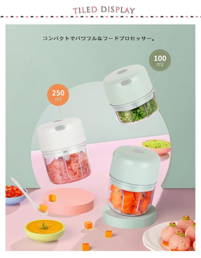 フードプロセッサー 大根おろし器 コードレス 電動 一台多役 小型 コンパクト USB 充電式 みじんぎりチョッパー 操作簡単 氷 泡立て器 大根おろし だいこんおろし器 みじん切りチョッパー 大根おろし 小さめ ミニサイズ 250ML/三刃 100ML/二刃