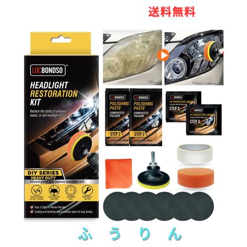 LOCBONDSO ヘッドライトクリーナー &黄ばみ 簡単施工 ヘッドライト コーティング 磨き 黄ばみ取り 車のヘッドライト修復キット 日本語説
