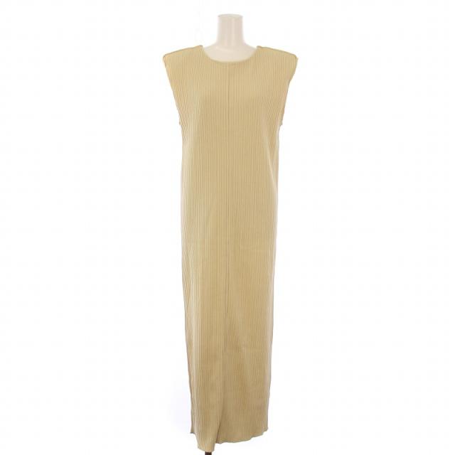 【中古】アンヌーク カットオフリブワンピース タイト マキシ ロング ノースリーブ クルーネック スリット ベージュ