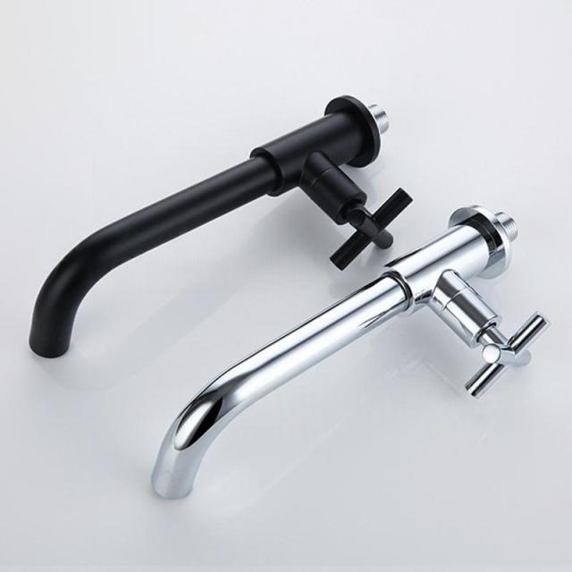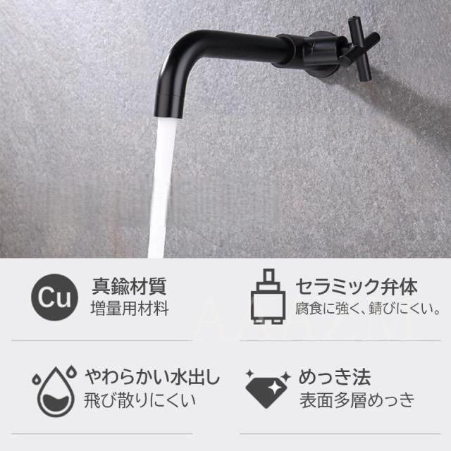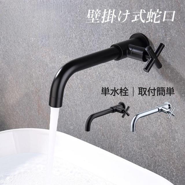 キッチン水栓 蛇口 壁付け 交換自分で 単水栓 ワンホール ロング 横水栓 水道蛇口 おしゃれ 壁掛け キッチン蛇口 洗面所 浴槽 台所 洗面ボー ブラック 水栓金具
