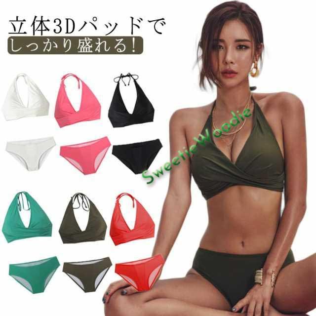 送料無料 水着 レディース 水着セット 2点 ホワイト カーキ レッド ブラック 黒 ブルー ピンク ビキニセット 大きい 女性 ママ用 海 プール スポーツ 大人 20代 30代 40代 OL ママ 母