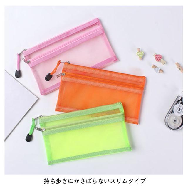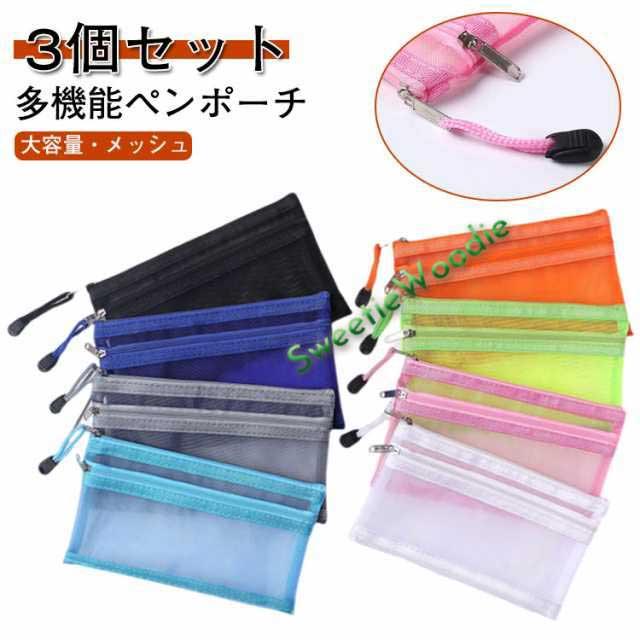 | 【3個セット】【多機能ペンポーチ】【大容量・メッシュ】 持ち歩きにかさばらないスリムタイプ 消しゴム、付箋、ハサミ、定規、メジャー、修正テープなどの小物もたっぷり収容できます。 ふせんや定規などを分けて収納できるポケットがついています。 持ち運びしやすいフラットな形状 女性には化粧ポーチとしても有効活用可能。 いつも携帯するUSBメモリやスマートフォンの携帯充電器の機器類にも。 常備薬や目薬、塗り薬などちょっとした小物入れにも。多様に利用できて用途は広がります。 社会人、大学生、高校生、中学生男子&女子、小学生の男の子&女の子にとても人気。 | |