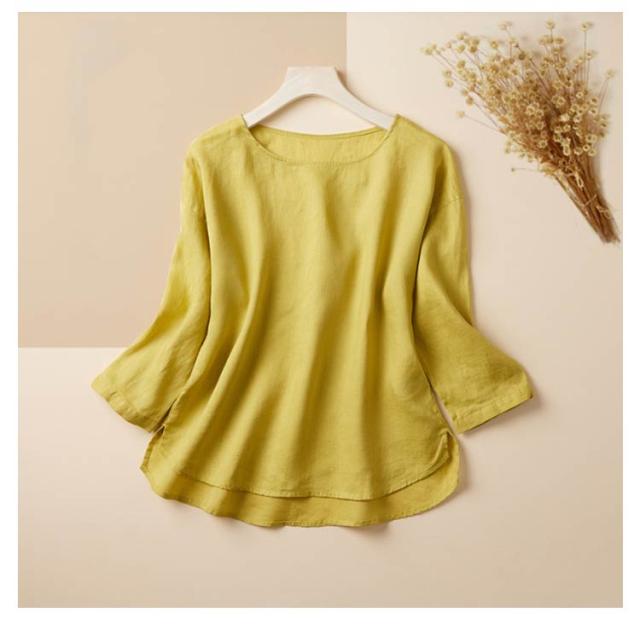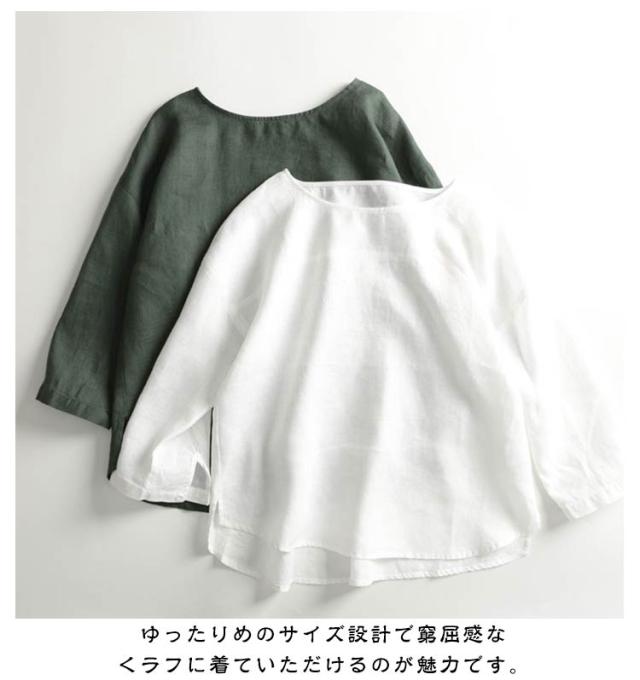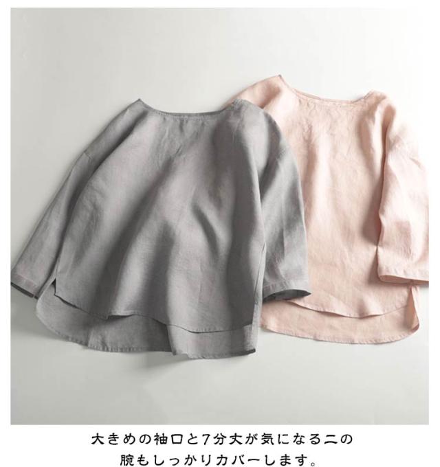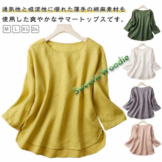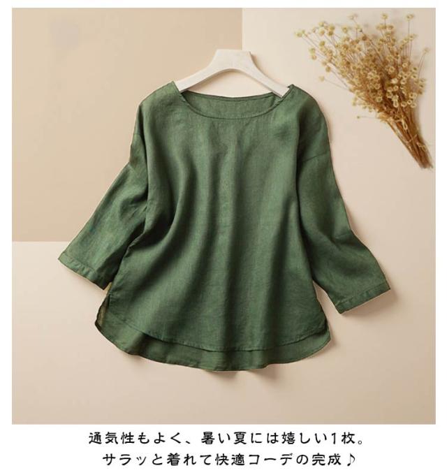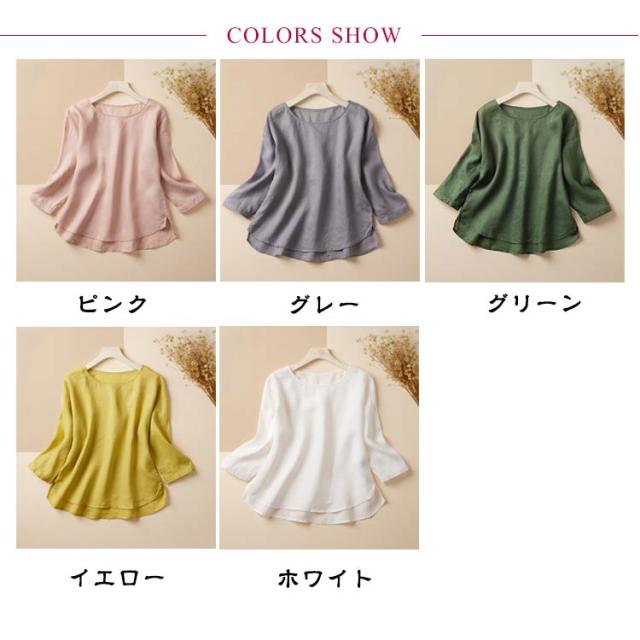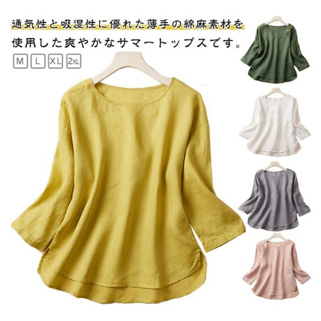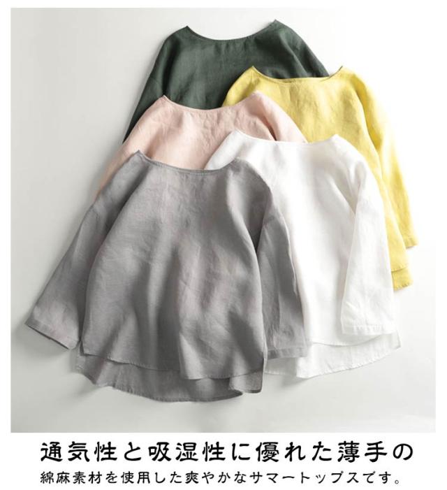 レディース 七分袖 プルオーバー ブラウス 体型カバー トップス 肘が隠れる 綿麻 シャツ ぽわん袖 ナチュラル シャツ クルーネック 透け Tシャツ ルームウェア シャツ パジャマ チュニック 春夏 UVカット 部屋着 母の日