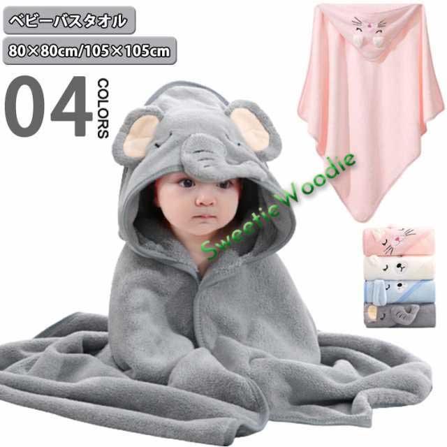 | 【ベビーバスタオル】【80×80cm/105×105cm】【4color】 かわいいアニマルのフードがついた、実用性と可愛いを兼ね合わせたバスタオルです。 フード付きで頭まで全身を包む、髪の毛から身体まで全身を乾かしてくれる★ 吸収性と速乾性にすぐれたマイクロファイバー素材です。 水分をサッと吸い取ってくれるので、お風呂上りにパッと着せて湯冷めを防止します。 お風呂以外でもプールや海など様々な場面でお使いいただけます。 バスタオルとしてはもちろん、タオルケットやおくるみ等、気温差の激しい時期にも1枚羽織れる、1年中通して大活躍! | |