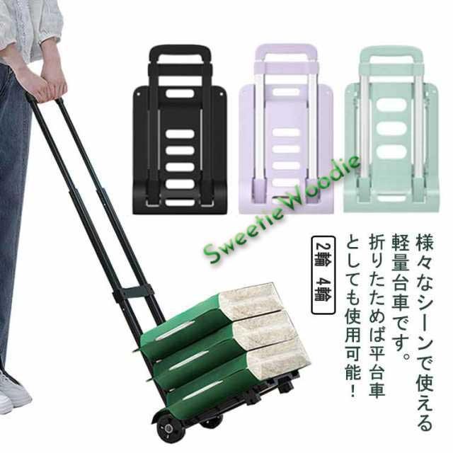 折りたたみ 台車 軽量 静音 キャスター付き 4輪 2輪 運搬台車 キャリーカート ワゴン 手押し台車 折り畳み ハンドル折りたたみ式 荷台車 平台車 家庭用 業務用 店舗 会社 オフィス 書類 荷物 運搬 移動 アウトドア グリーン パープル ブラック