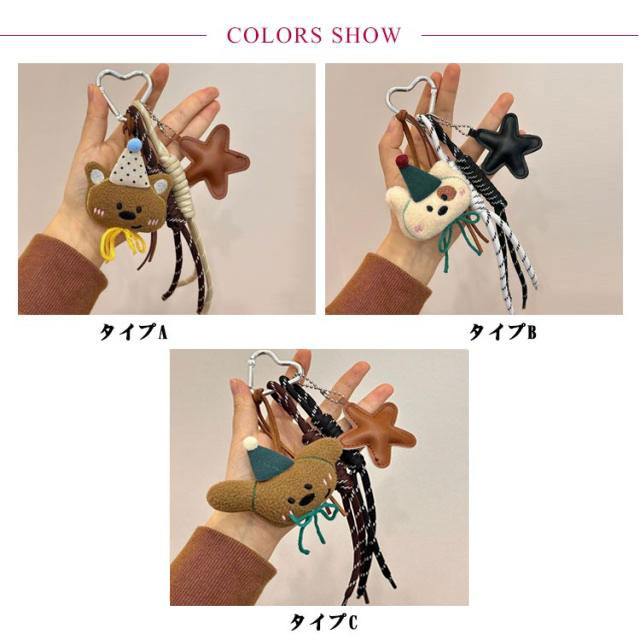 | かわいらしいくま&ワンちゃんのバッグチャームが登場しました! 毛並みのボア素材が触り心地もよく、愛らしい表情のアニマルが帽子をかけています。 ちょっとした遊び心もあって、バッグやキーホルダーにつけるとおしゃれ度がアップしますよ。 大人っぽいデザインで、さりげない可愛さが魅力的です。 ちょっとしたプレゼントにもおすすめです!インスタ映えアイテムとしても重宝します。 | |