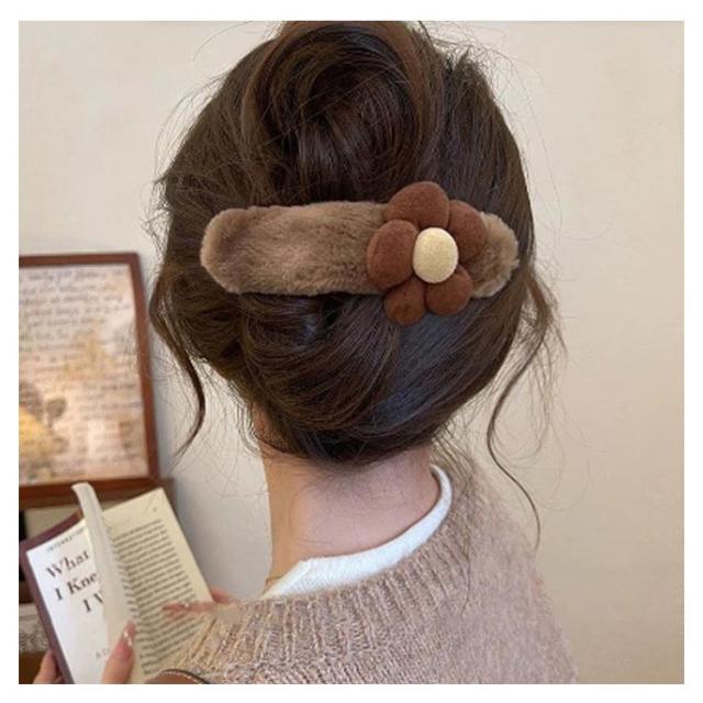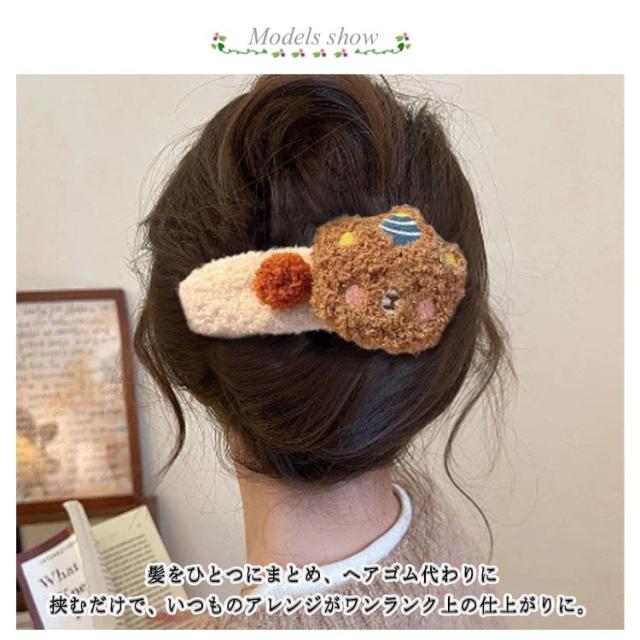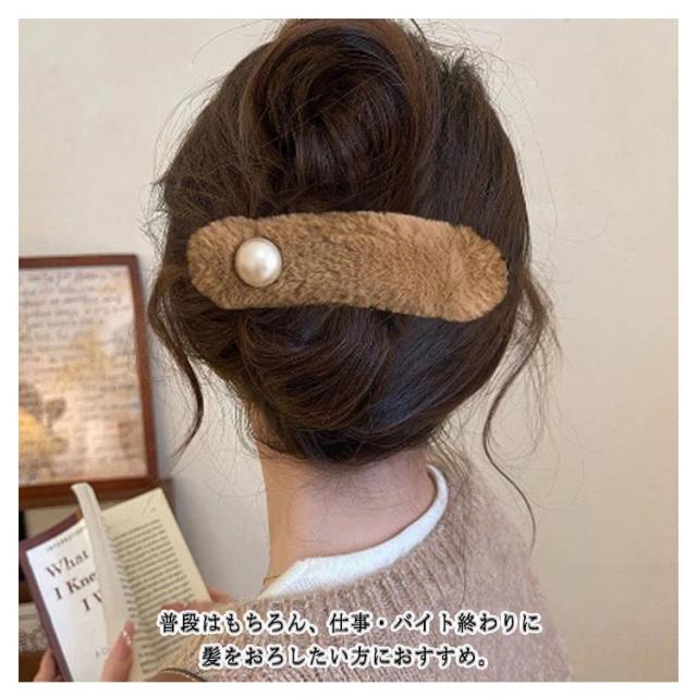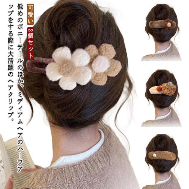 大さめ 冬 ヘアバレッタ バンスクリップ テールクリップ もこもこ ヘアクリップ おしゃれ 髪留め ヘアアクセサリー 髪飾り しっかり髪留め 可愛い 2個セット シンプル オフィス