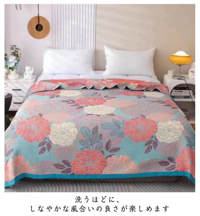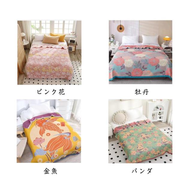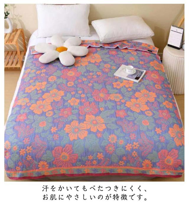 ガーゼケット ガーゼ 綿毛布 タオルケット 花柄 6重 総柄 ブランケット 150×200cm 涼しい 夏用掛け布団 軽量 肌掛け布団 肌布団